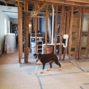 It was very exciting and very enlightening. But having the floors torn up meant we could not access the kitchen or the dining room. The floors were open to the wild. Maybe a mouse or two or more passed through - and maybe they still are? Perhaps a squirrel or chipmunk moved in for a bit and stored some helicopter maple seeds behind a cushion on the couch or in my snow boots - while we were both away for Christmas/Hanukkah week. Who knows who else crawled their way through??